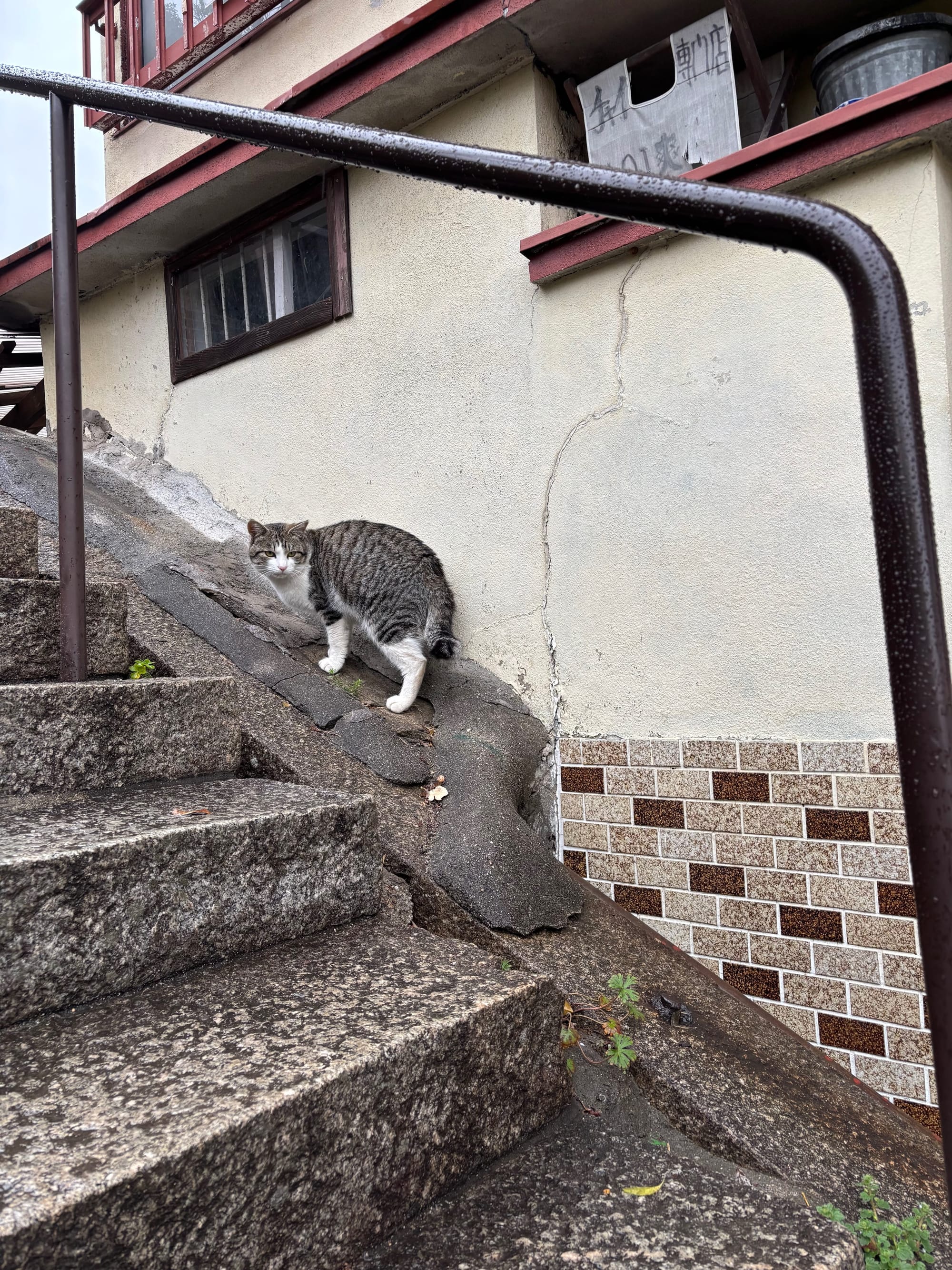 On this day it rained a lot throughout the morning, and the rain continued from my journey from Fukuyama until I arrived in Onomichi. Eventually, like everything else in life, the rain stopped for a while, but they forgot to tell the cats that live in this city. 🐈