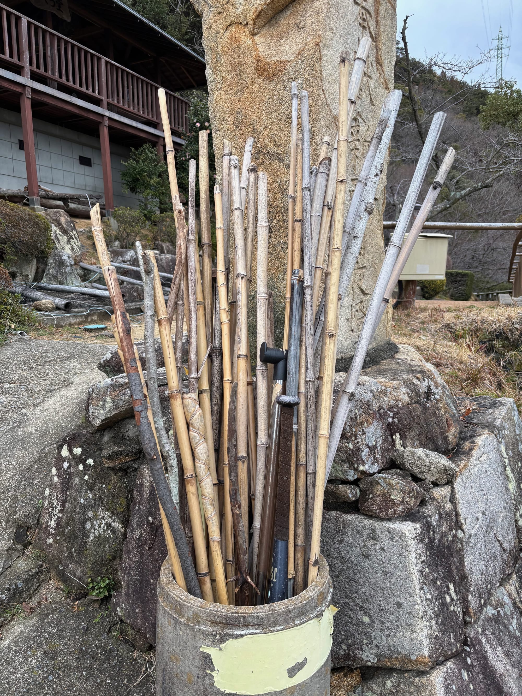 As you climb up, you come across these bamboo sticks and also a baseball bat. Either this is for you to lean on during the journey or it is for playing baseball. I looked everywhere and didn't see any baseball fields, so it must really be for you to lean on during the ascent and descent. Or, who knows, what if you meet a bear on the way up?